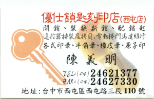 汽機車開鎖,電動鐵捲門,CISA名鎖,以色列大力士鎖,各種門鎖,感應卡感應扣,遙控器安裝拷貝,晶片鎖匙,汽車開鎖,機車開鎖,開運印章,肚臍章/胎毛筆,手工印章,象牙印章,印章圖案設計,公司章,電腦刻印,藝術印章,橡皮章,牛角印章,印鑑章,原子章