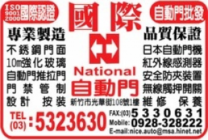 本公司為專業不繡、鋁、玻璃門面自動門、推拉門、及門禁管制磁力鎖、陰極鎖、陽極鎖....等.設計、製造、安裝、維修及代理經銷國際牌自動門設備。經營品牌:國際牌自動門設備代理經銷 、專業製造、代理經銷